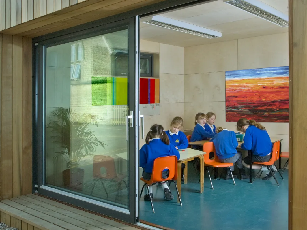 Of je nu een muzieklokaal, kunststudio of gewoon extra les- of kantoorruimte nodig hebt, kies het klaslokaal waar leren van nature plaatsvindt. Een Ecospace klaslokaal met een duurzame cederen of Fraké gevel en een met sedum begroeid dak. Veel licht en natuurlijke kleuren in het lokaal.